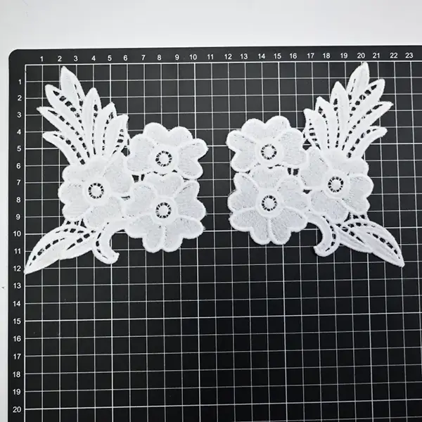 White Milk Silk Embroideryレースウェディングドレス用のビンテージ化学レースシューズや、豪華なミルクシルクから作られたその他の衣料品アクセサリー。ウェディングドレス、ベール、靴の装飾、繊細な服のアクセントに最適です。構造を維持しながら、超柔らかくて軽量の生地は美しくドレープされます。正確にレーザーカットエッジは、きれいな仕上げを保証します。繊細な詳細を保存するために推奨されるハンドウォッシュ。ブライダルクチュール、ランジェリー、家宝品質のアクセサリーに最適です。プレミアムファブリックサプライヤーからヤードが入手できます。