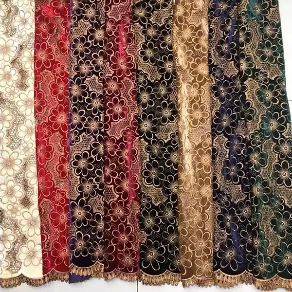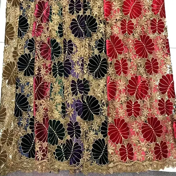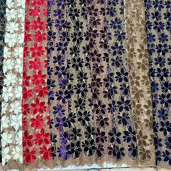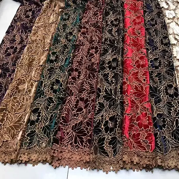 | 製品名 | 新しい到着ベルベットレーザーカットフラワーパターンレースファブリック | ||