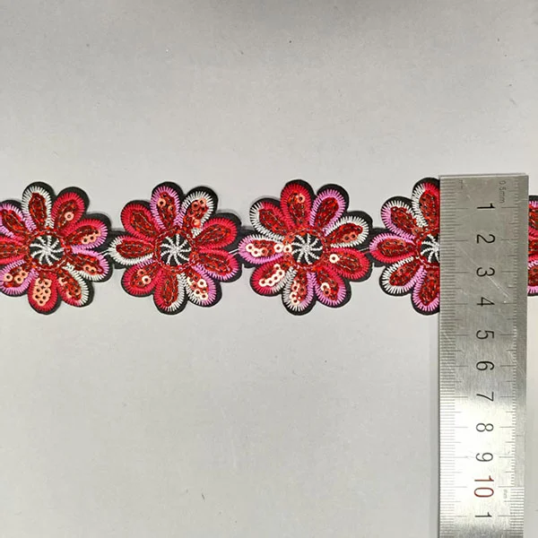スパンコールの衣類アクセサリーバック接着剤でトリミングするレースは、スパンコール、レース、粘着性の接着剤の裏地を特徴とする装飾トリムの一種です。これにより、縫製を必要とせずに衣類、アクセサリー、またはその他のプロジェクトに簡単に取り付けることができます。スパンコールの衣料品アクセサリーが工場からバック接着剤をトリミングすることを安心させることができます。
