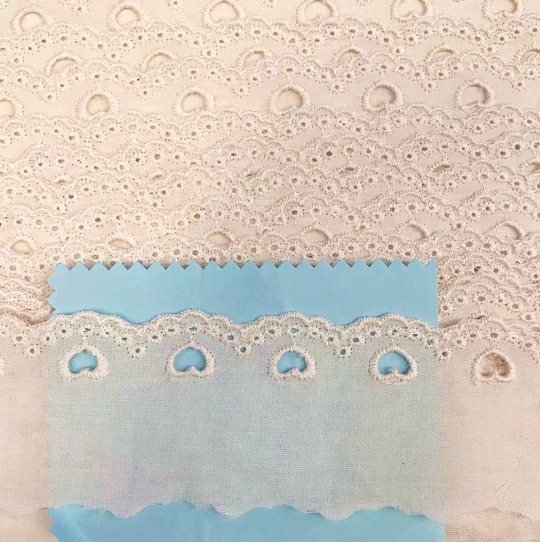 波状のエッジレーストリム付きの白い綿の綿